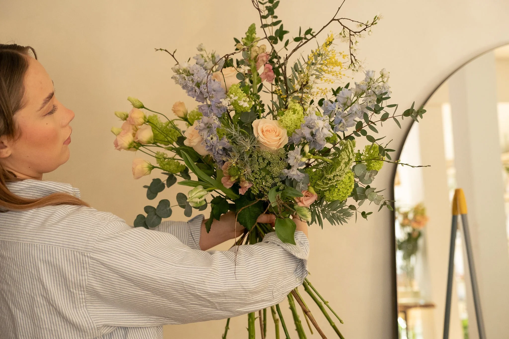 Our Seasonal Florist’s Choice Bouquet is thoughtfully designed using the freshest flowers of the season, hand-picked in our studio for their natural beauty, colour and texture. Each arrangement is one-of-a-kind and created in our signature wild, garden-inspired style — a beautiful surprise that reflects the very best blooms available on the day.