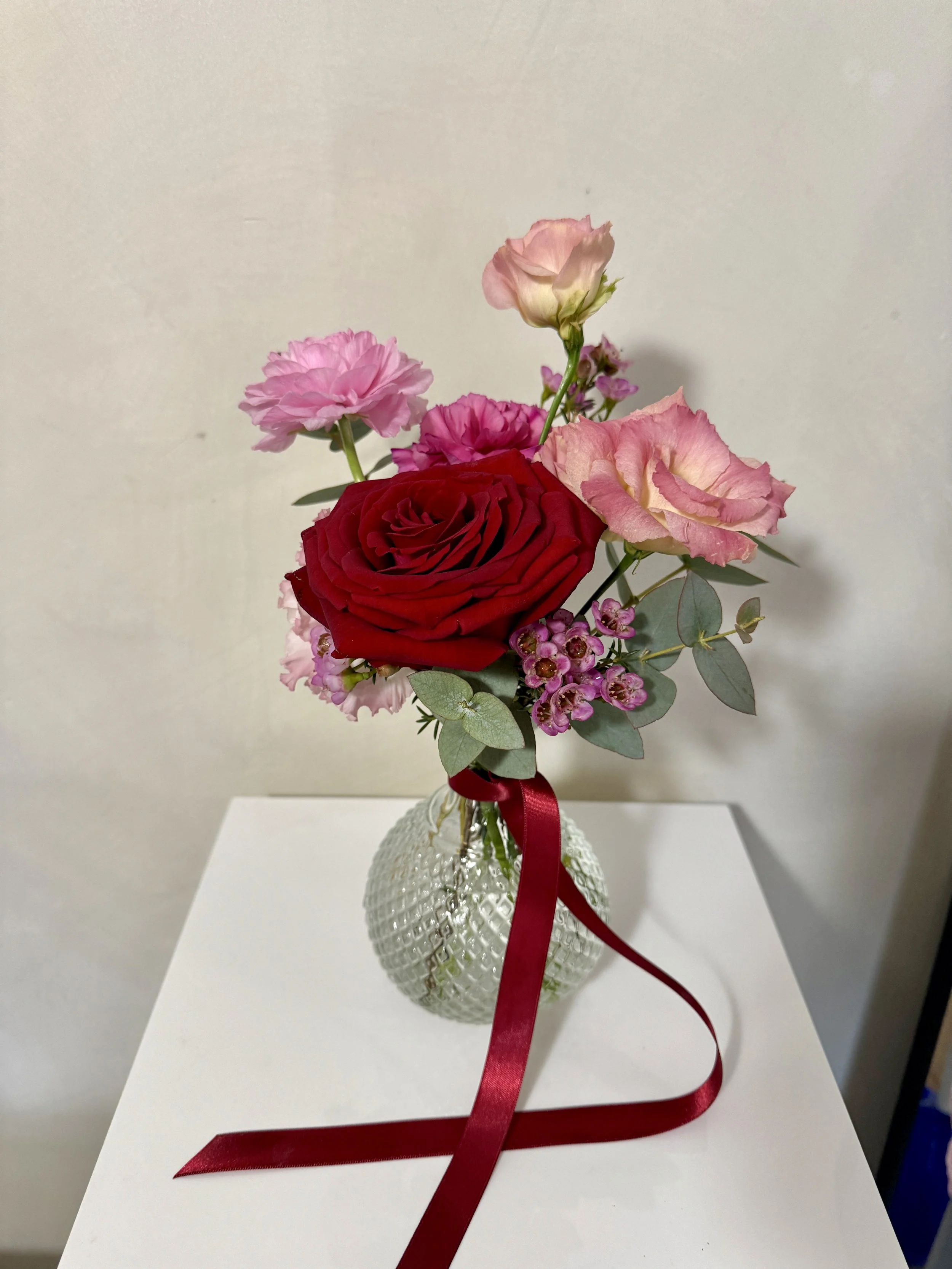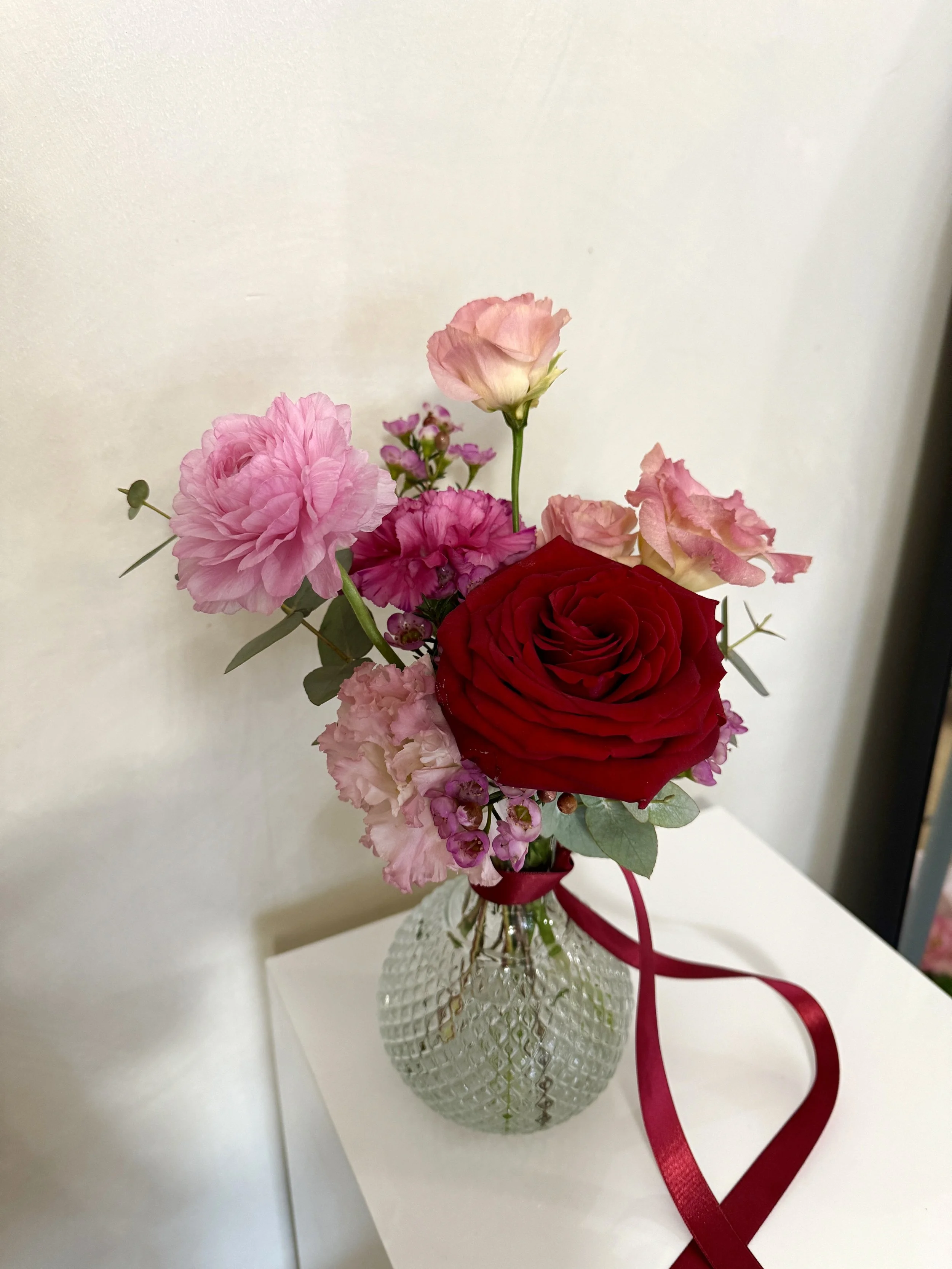 Indulge in the beauty of premium red roses, hand-tied with Wilder’s signature garden-inspired style. This bouquet features lush, velvety roses arranged with seasonal greenery to create a full, luxurious and romantic display.