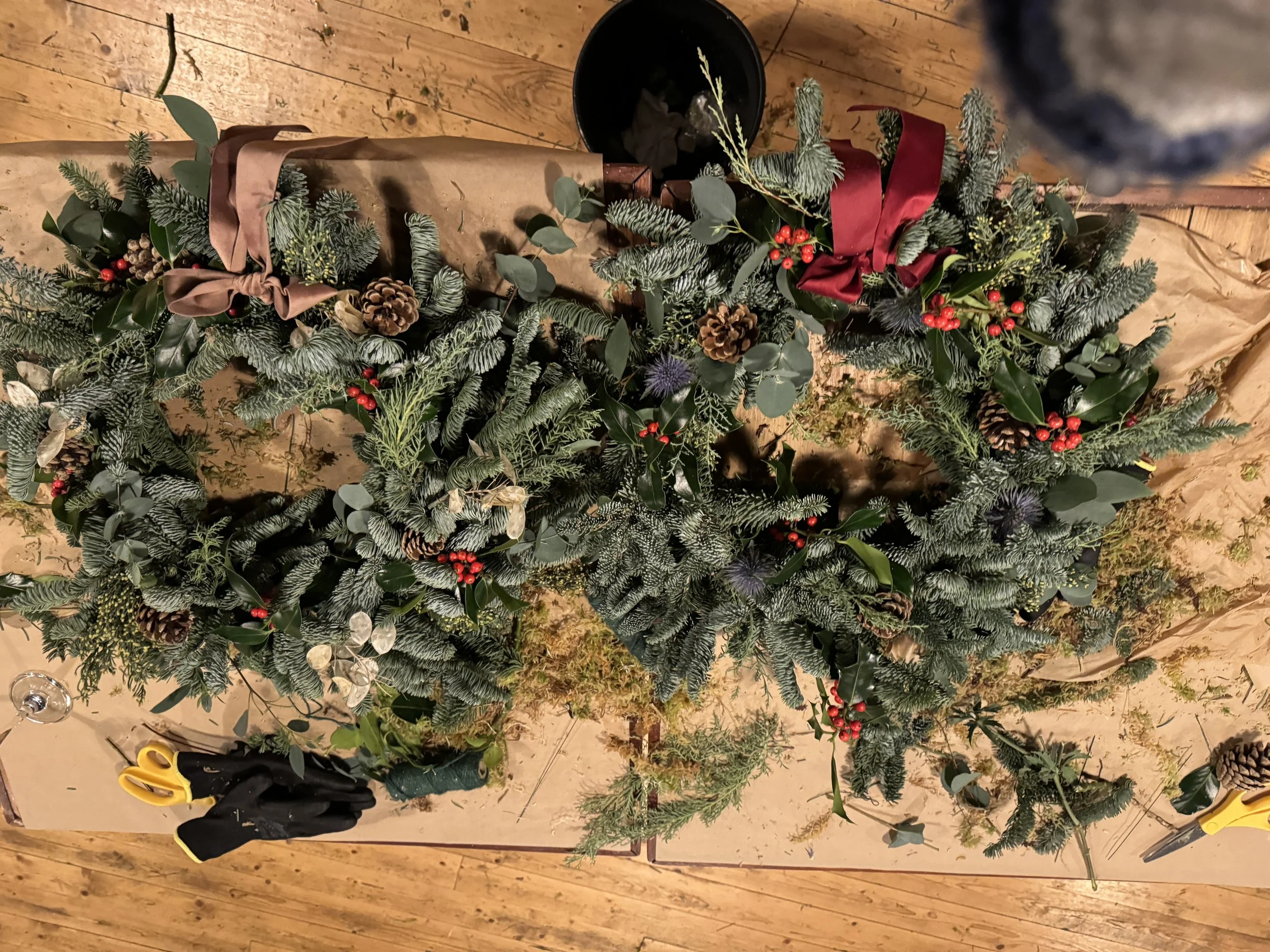 We also offer private hire workshops – hosted in our cosy studio or brought to your own space. Perfect for everything from small gatherings to larger groups, they’re a brilliant choice for team-building days or a festive staff Christmas celebration. Enquiries: mia@wilderflowers.co.uk
